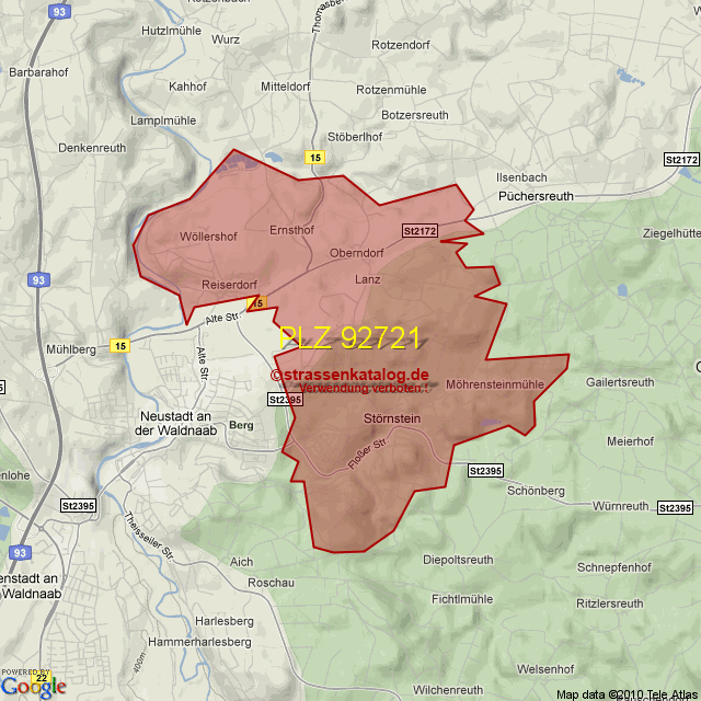 Straßenverzeichnis zur Postleitzahl 92721