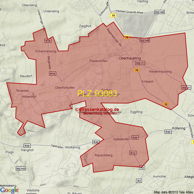 Ortsteile von Obertraubling mit der PLZ 93083