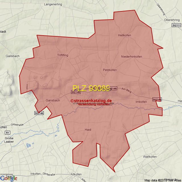 Postleitzahlgebiet (PLZ) 93089