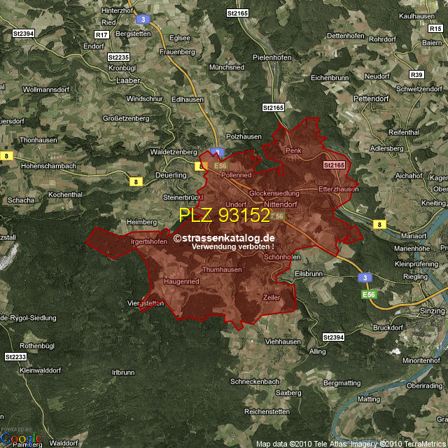 Postleitzahlgebiet (PLZ) 93152