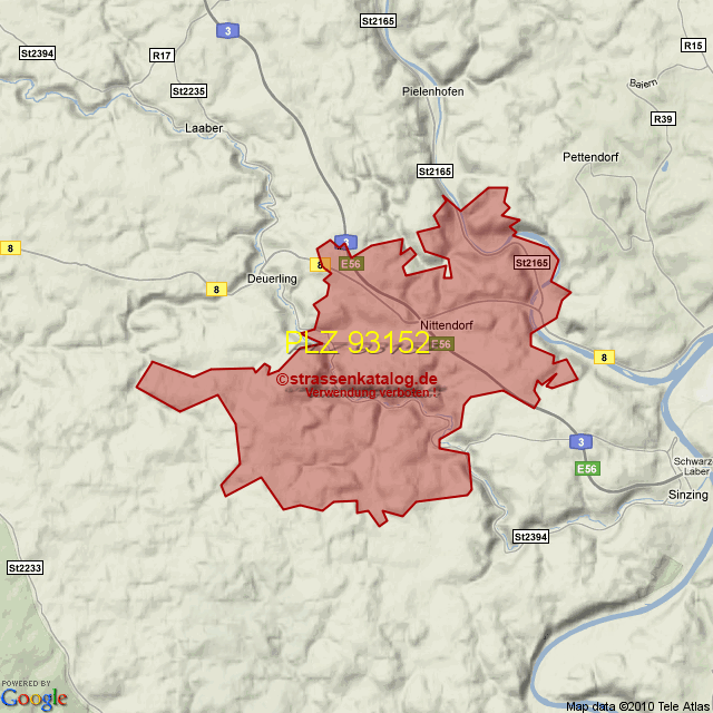 Straßenverzeichnis zur Postleitzahl 93152