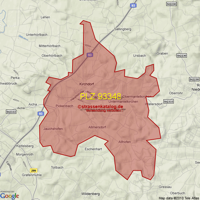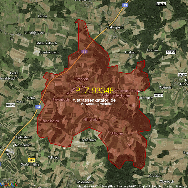 Postleitzahlgebiet (PLZ) 93348