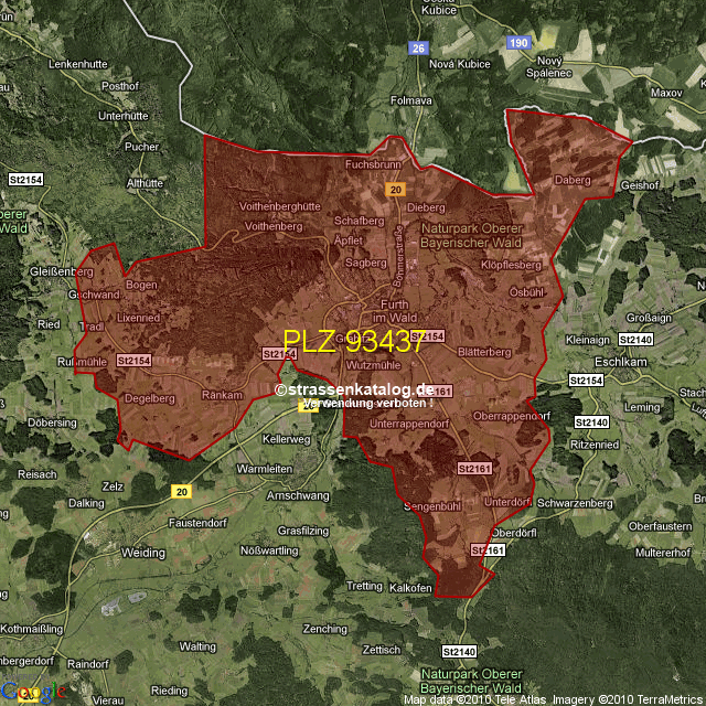 Ortsteile von Furth im Wald mit der PLZ 93437