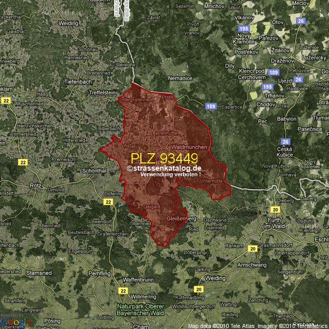 Ortsteile von Waldmünchen mit der PLZ 93449