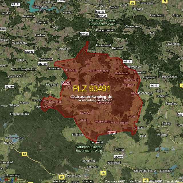 Postleitzahlgebiet (PLZ) 93491