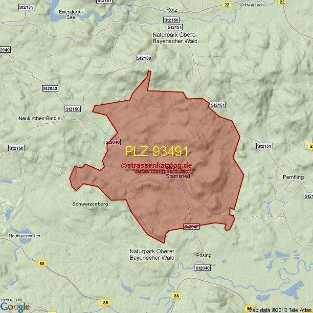 Straßenverzeichnis zur Postleitzahl 93491