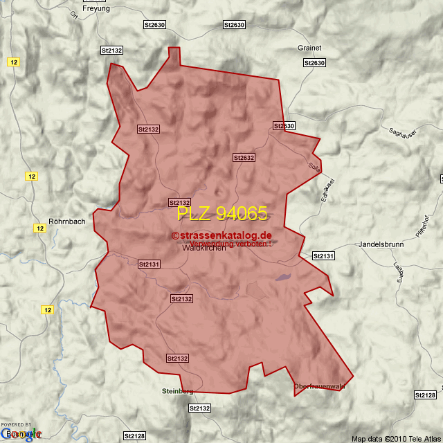 Ortsteile von Waldkirchen mit der PLZ 94065