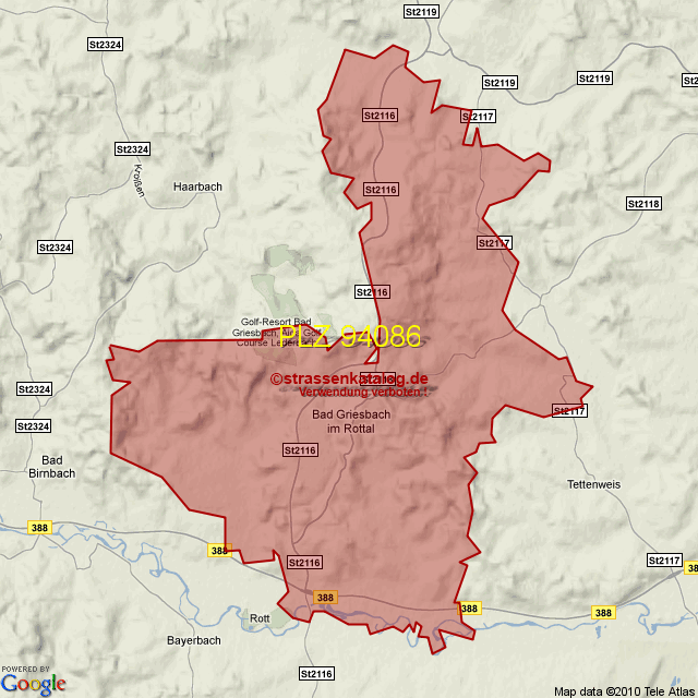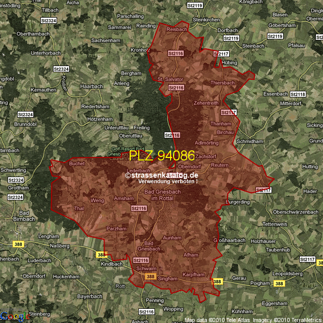 Ortsteile von Bad Griesbach mit der PLZ 94086