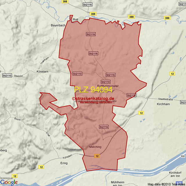 Straßenverzeichnis zur Postleitzahl 94094