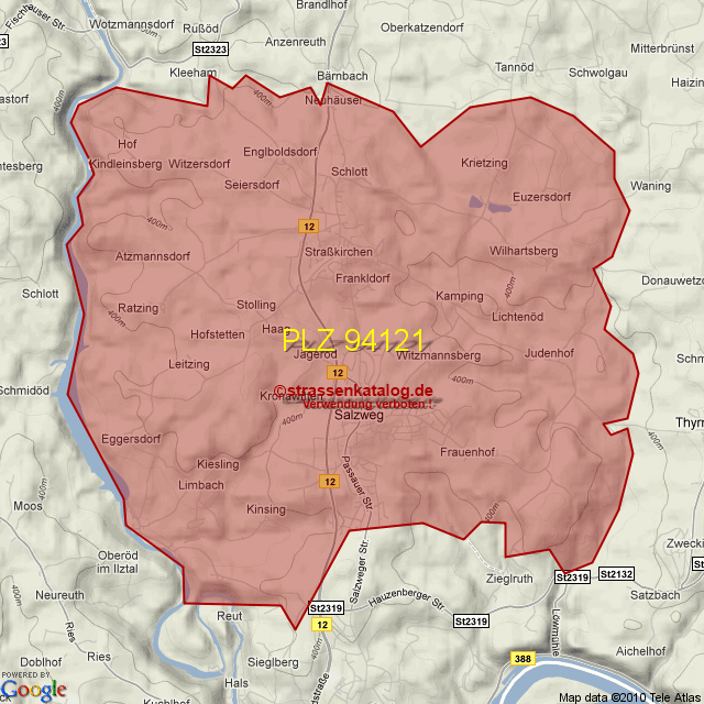 Straßenverzeichnis zur Postleitzahl 94121