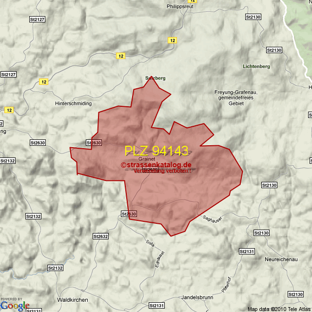 Straßenverzeichnis zur Postleitzahl 94143