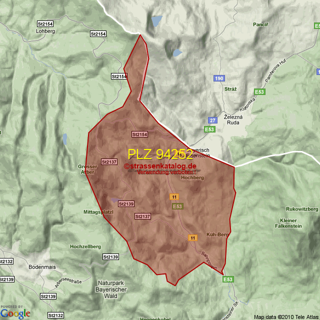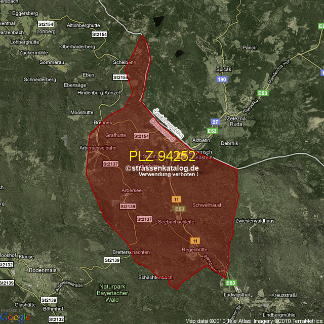 Ortsteile von Bayerisch Eisenstein mit der PLZ 94252