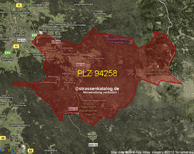 Straßenverzeichnis zur Postleitzahl 94258