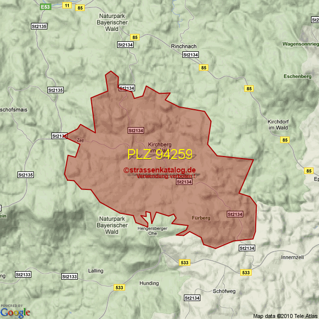 Ortsteile von Kirchberg i.Wald mit der PLZ 94259