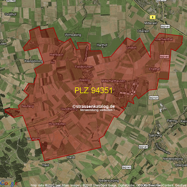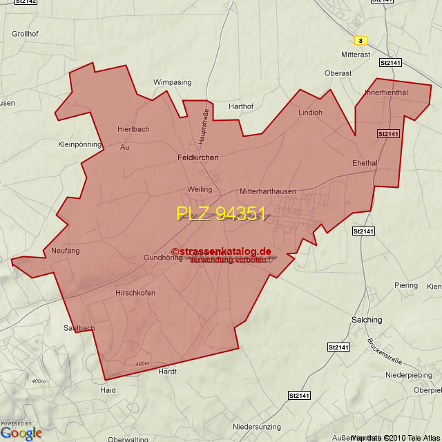 Straßenverzeichnis zur Postleitzahl 94351