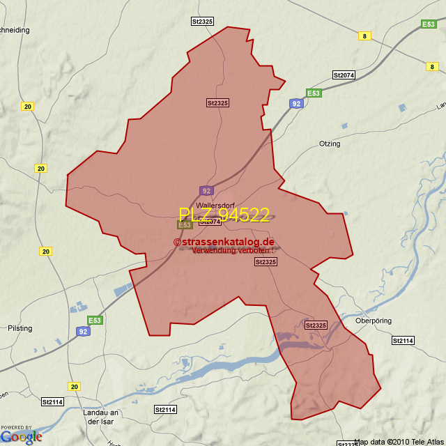 Straßenverzeichnis zur Postleitzahl 94522