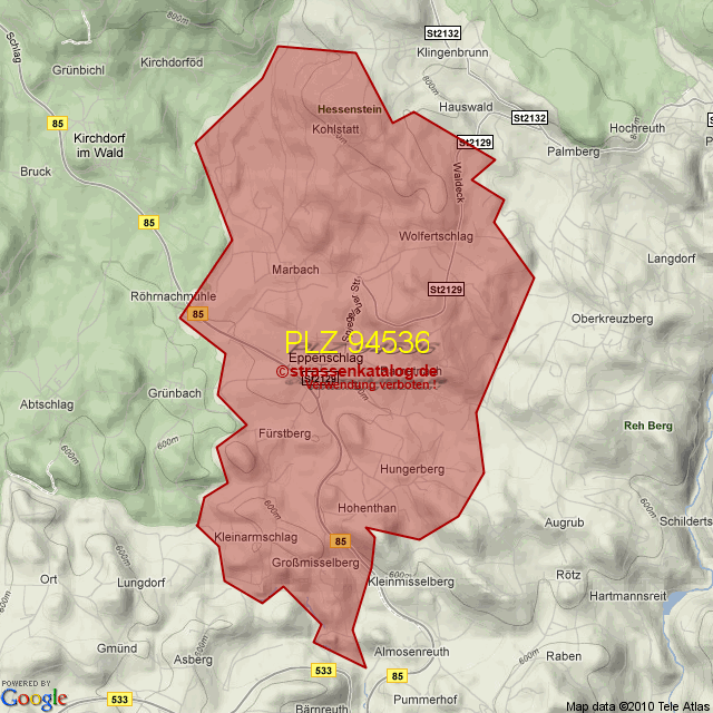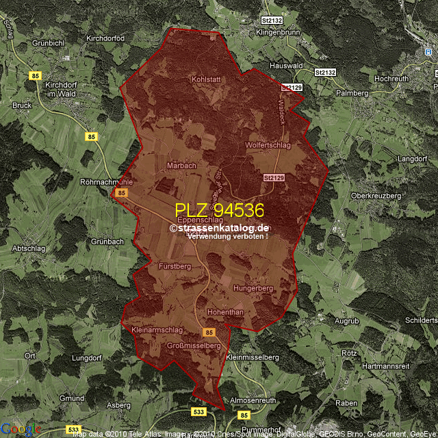 Ortsteile von Eppenschlag mit der PLZ 94536