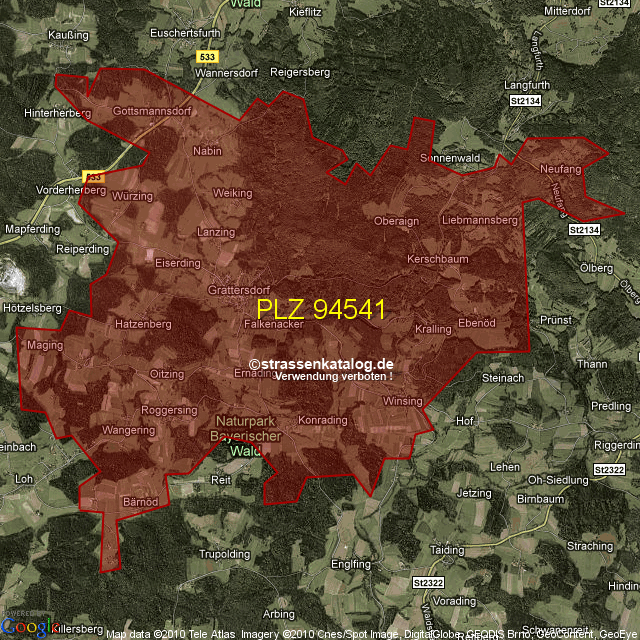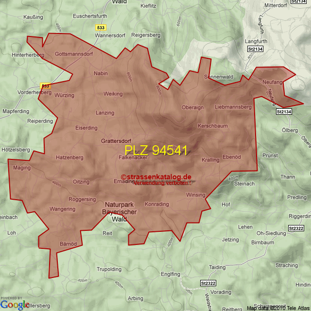 Straßenverzeichnis zur Postleitzahl 94541