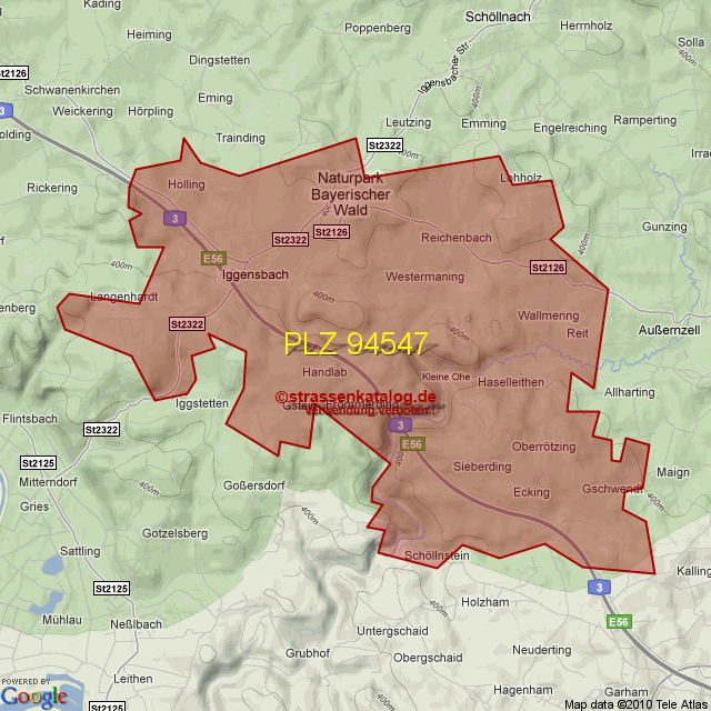 Straßenverzeichnis zur Postleitzahl 94547