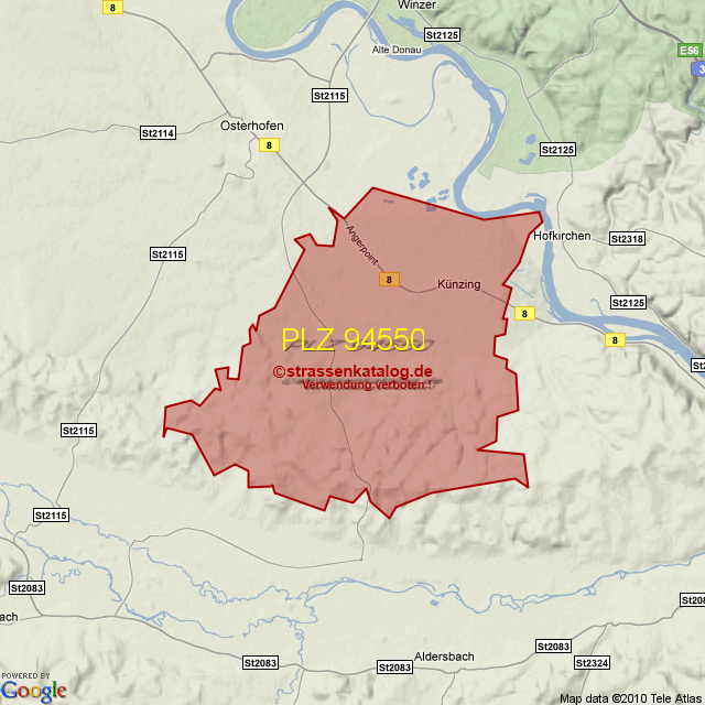 Straßenverzeichnis zur Postleitzahl 94550