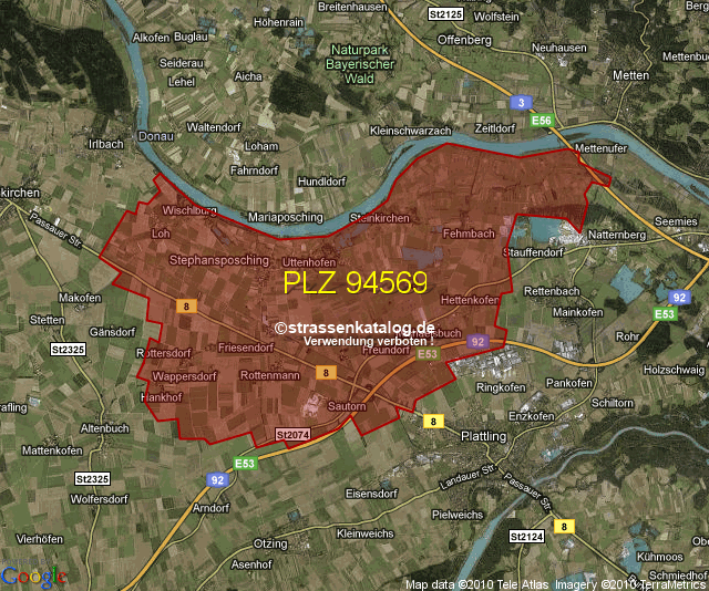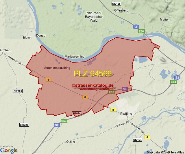 Straßenverzeichnis zur Postleitzahl 94569