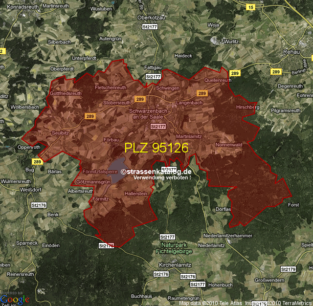 Ortsteile von Schwarzenbach mit der PLZ 95126