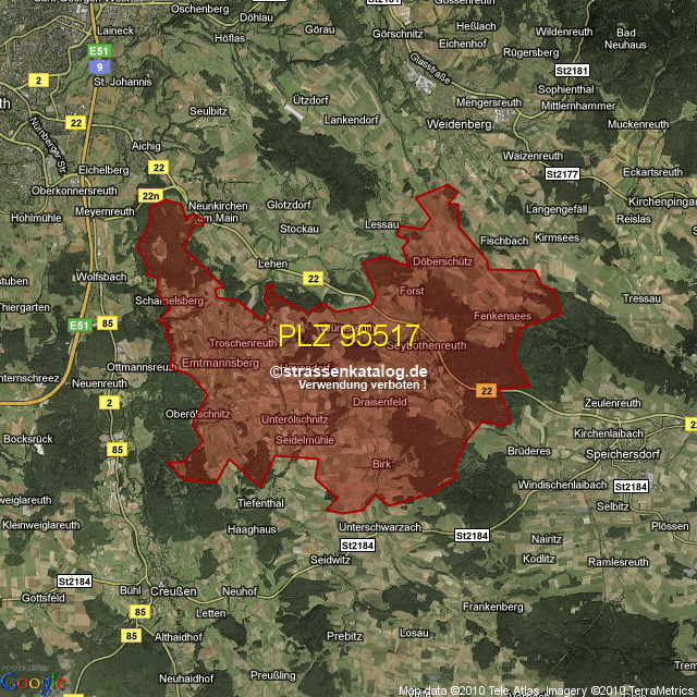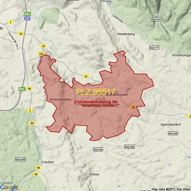 Ortsteile von Emtmannsberg mit der PLZ 95517