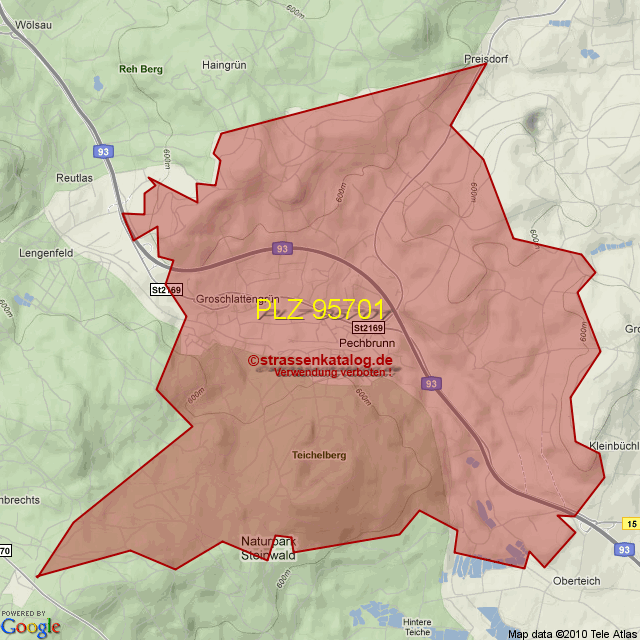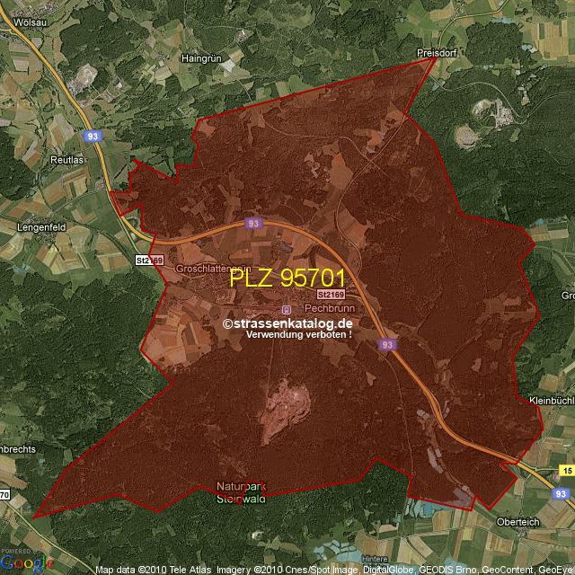 Ortsteile von Pechbrunn mit der PLZ 95701