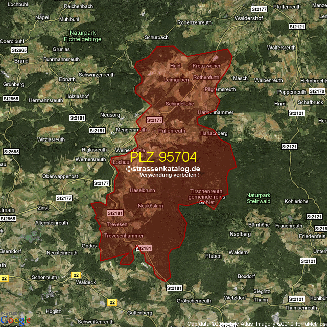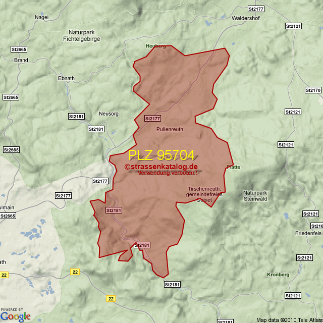 Ortsteile von Pullenreuth mit der PLZ 95704