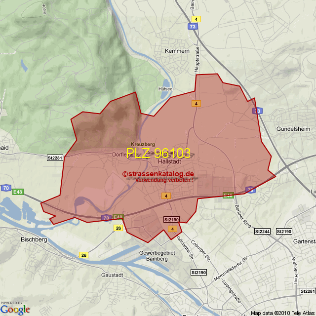 Straßenverzeichnis zur Postleitzahl 96103