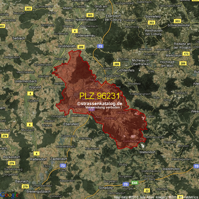 Straßenverzeichnis zur Postleitzahl 96231