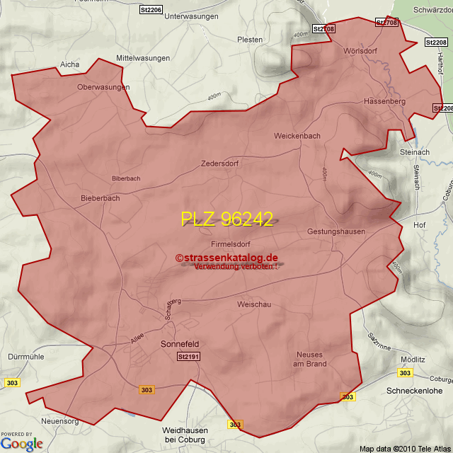 Straßenverzeichnis zur Postleitzahl 96242