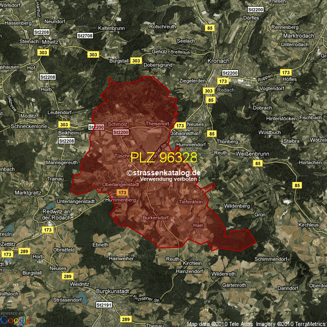 Straßenverzeichnis zur Postleitzahl 96328