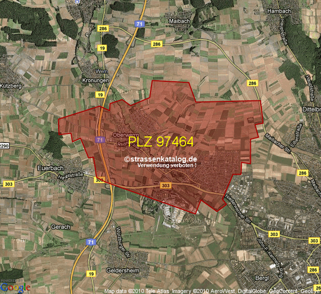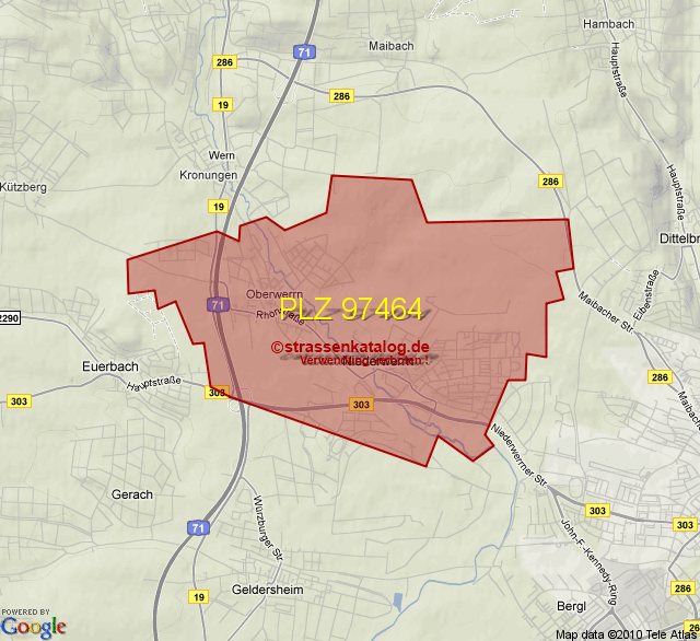 Ortsteile von Niederwerrn mit der PLZ 97464