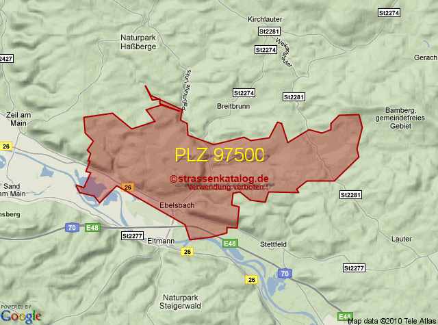 Ortsteile von Ebelsbach mit der PLZ 97500