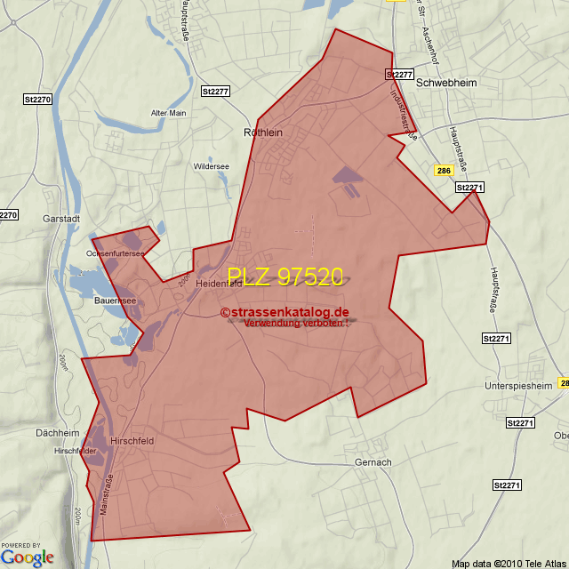 Straßenverzeichnis zur Postleitzahl 97520