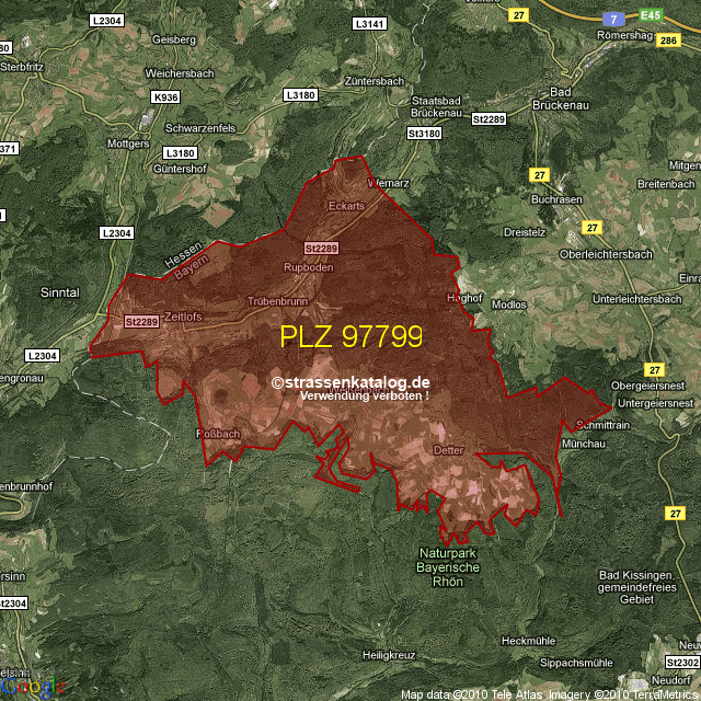 Postleitzahlgebiet (PLZ) 97799