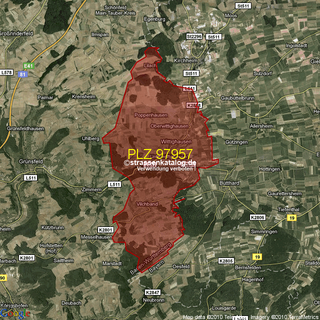 Postleitzahlgebiet (PLZ) 97957