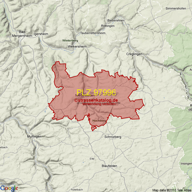 Postleitzahlgebiet (PLZ) 97996