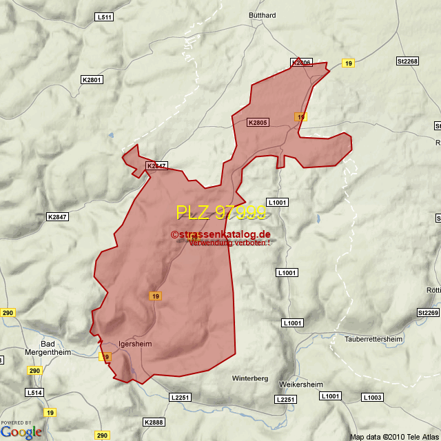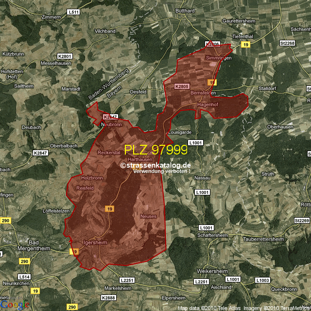 Postleitzahlgebiet (PLZ) 97999