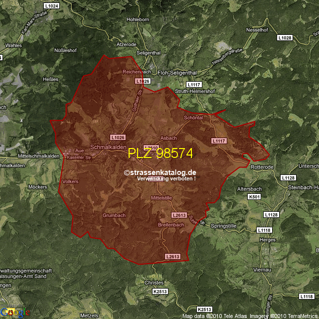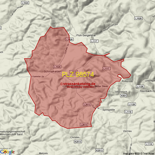 Ortsteile von Schmalkalden mit der PLZ 98574