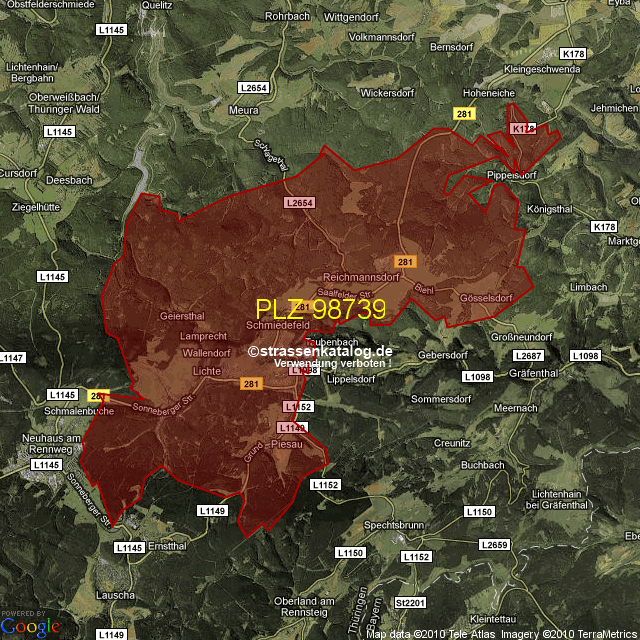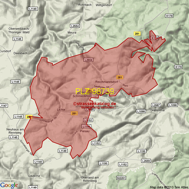 Ortsteile von Reichmannsdorf mit der PLZ 98739