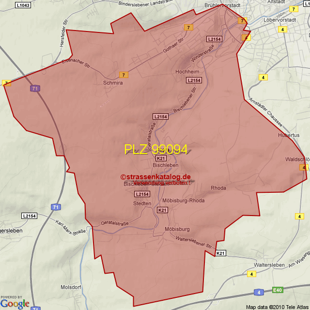 Zu der Postleitzahl 99094 wurden 1 Orte und 8 Ortsteile gefunden.