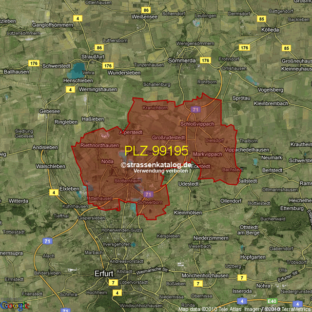 Ortsteile von Schloßvippach mit der PLZ 99195