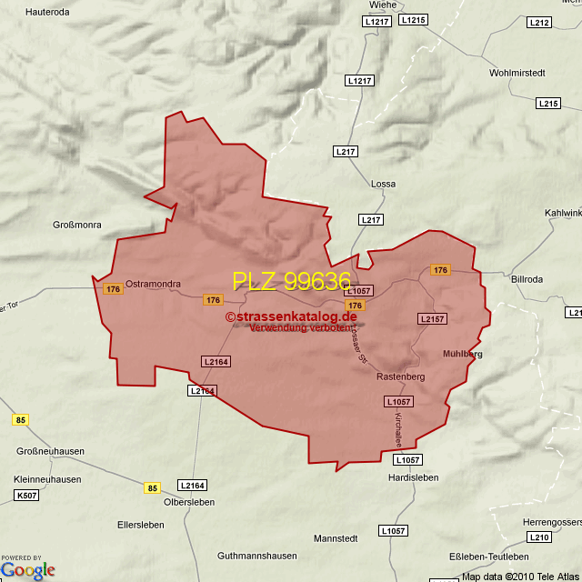 Straßenverzeichnis zur Postleitzahl 99636