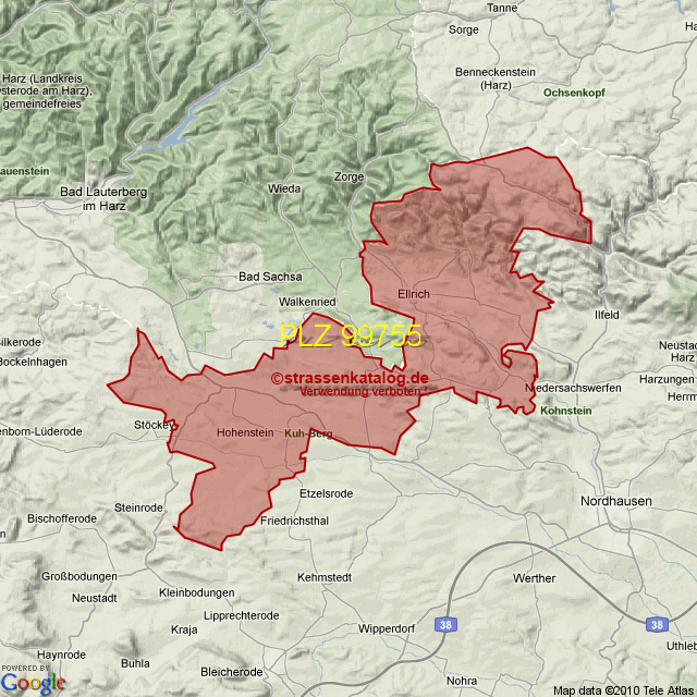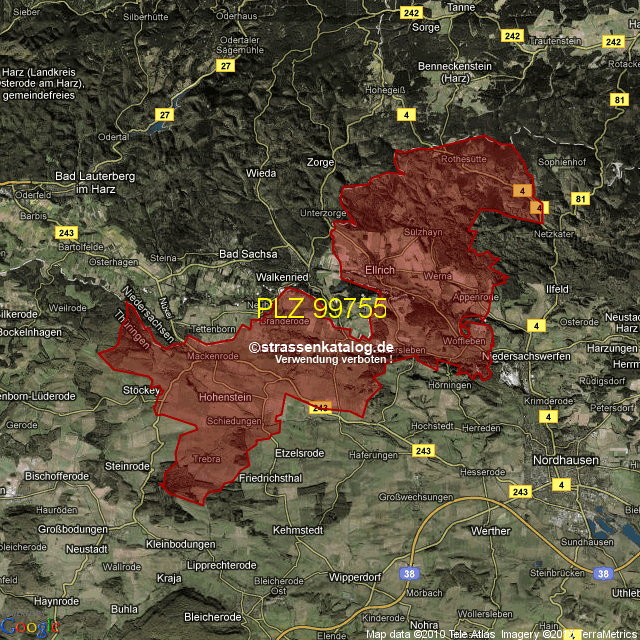 Ortsteile von Ellrich mit der PLZ 99755