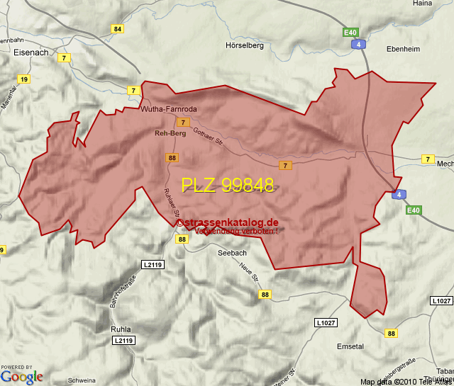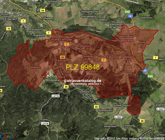 Postleitzahlgebiet (PLZ) 99848