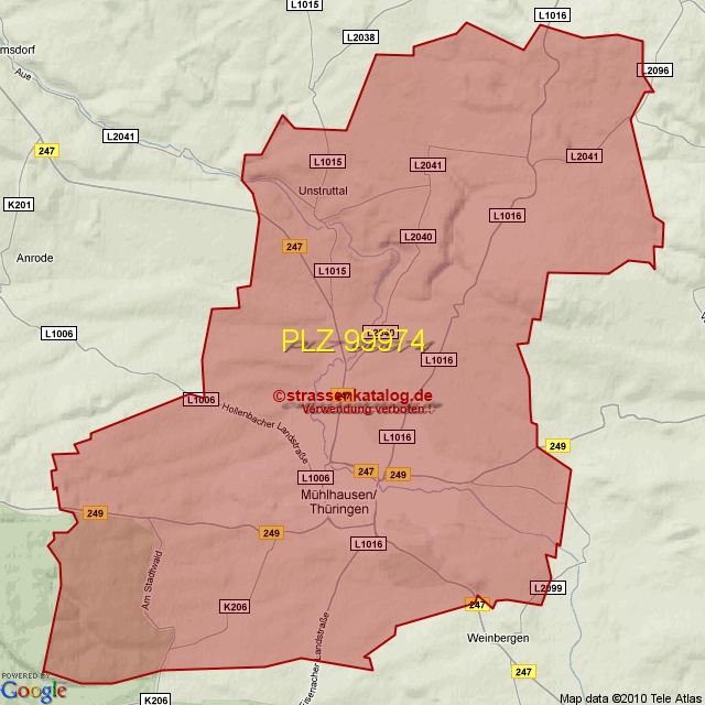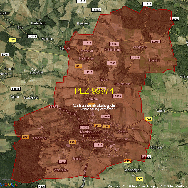 Ortsteile von Mühlhausen mit der PLZ 99974