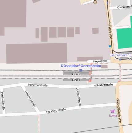 Geografische Punkte und Wege aus OpenStreetmap in der Nähe von ``Bahnhof Düsseldorf-Gerresheim´´