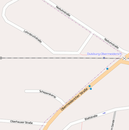 Geografische Punkte und Wege aus OpenStreetmap in der Nähe von ``Bahnhof Duisburg-Obermeiderich´´
